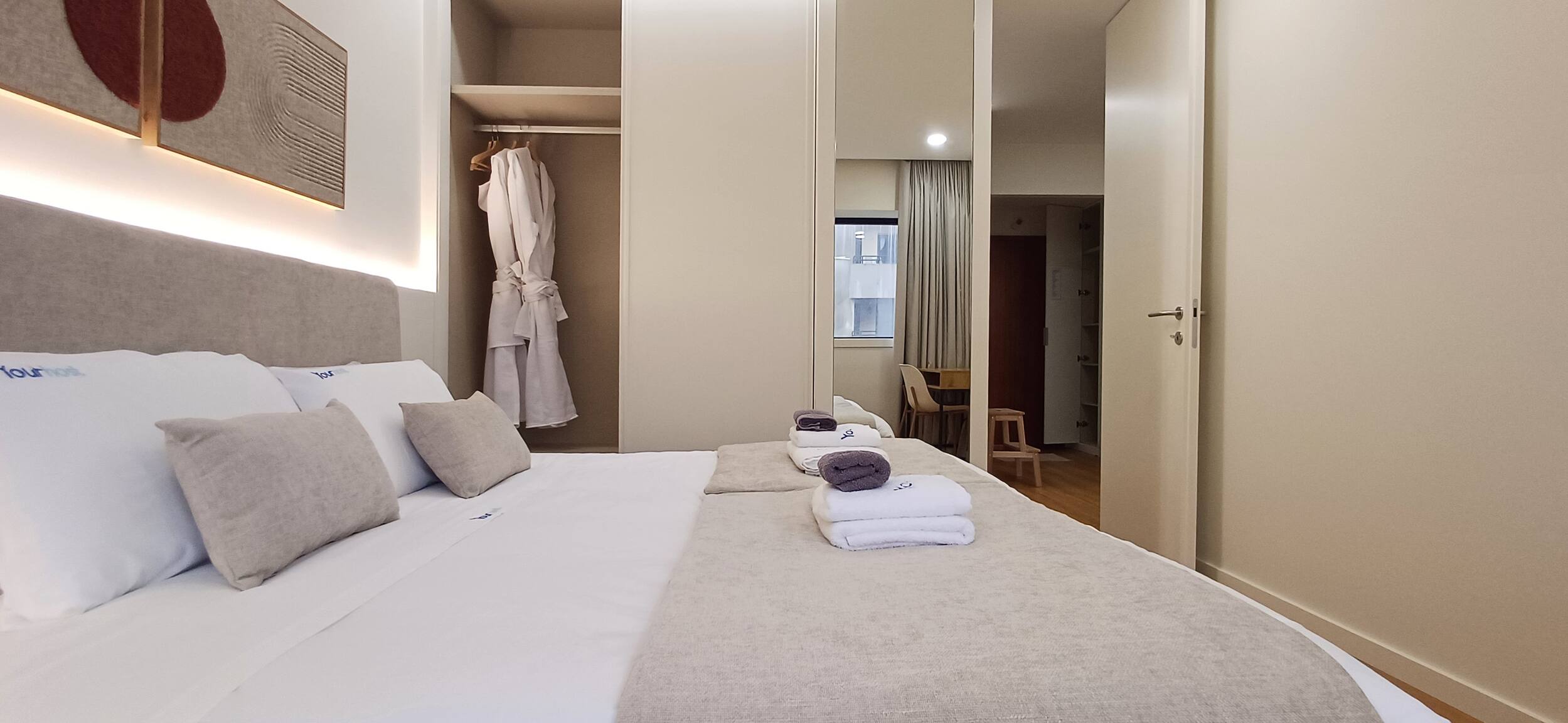 O espaço dispõe de ar condicionado, garantindo o máximo conforto em qualquer época do ano. A conectividade é assegurada através de WiFi gratuito, e encontrará também comodidades como chaleira elétrica, máquina de café, ferro de passar e produtos de limpeza.