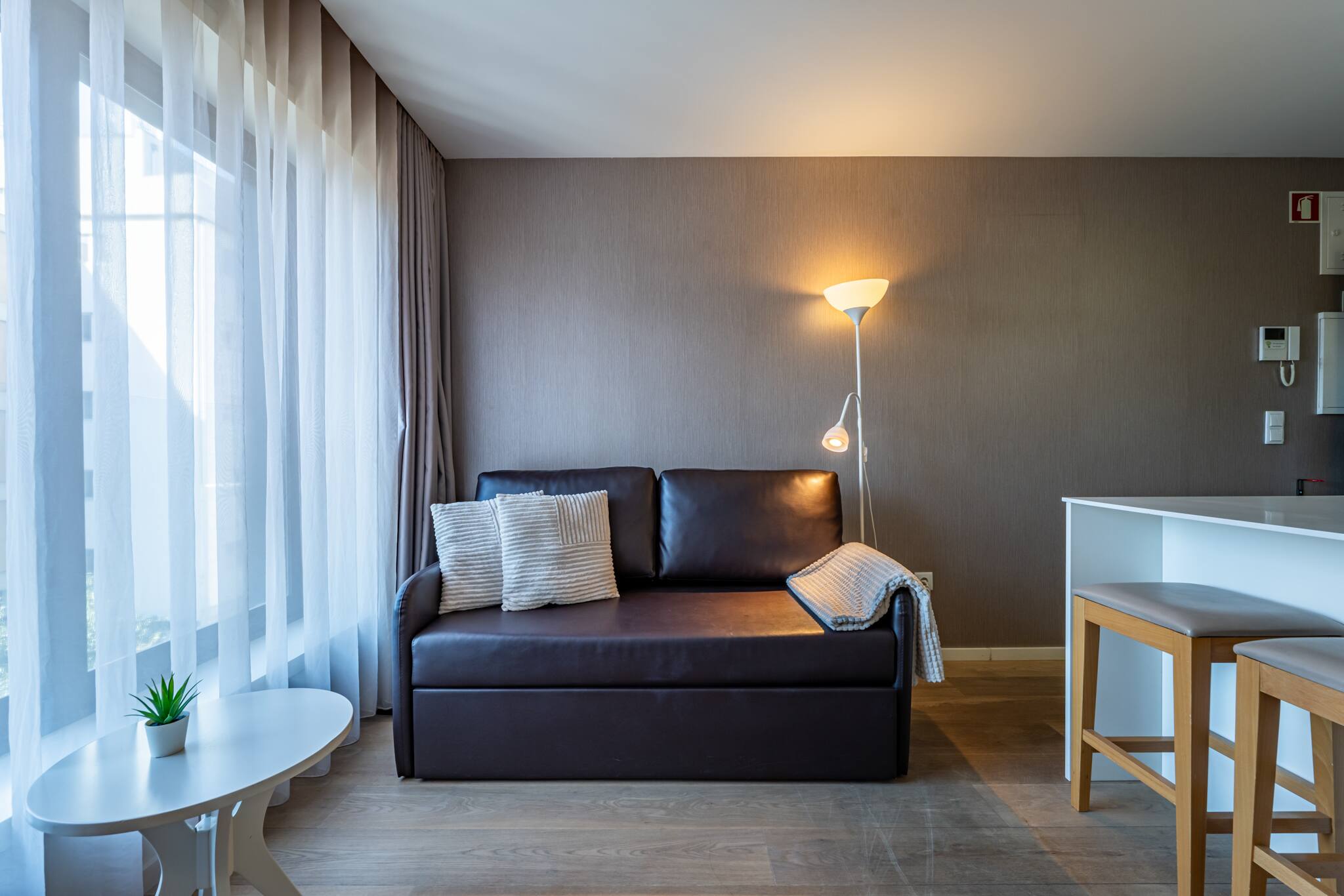 Sala de estar moderna – Relaxe no sofá confortável, assista TV ou aproveite a internet rápida para trabalhar ou planejar passeios.
