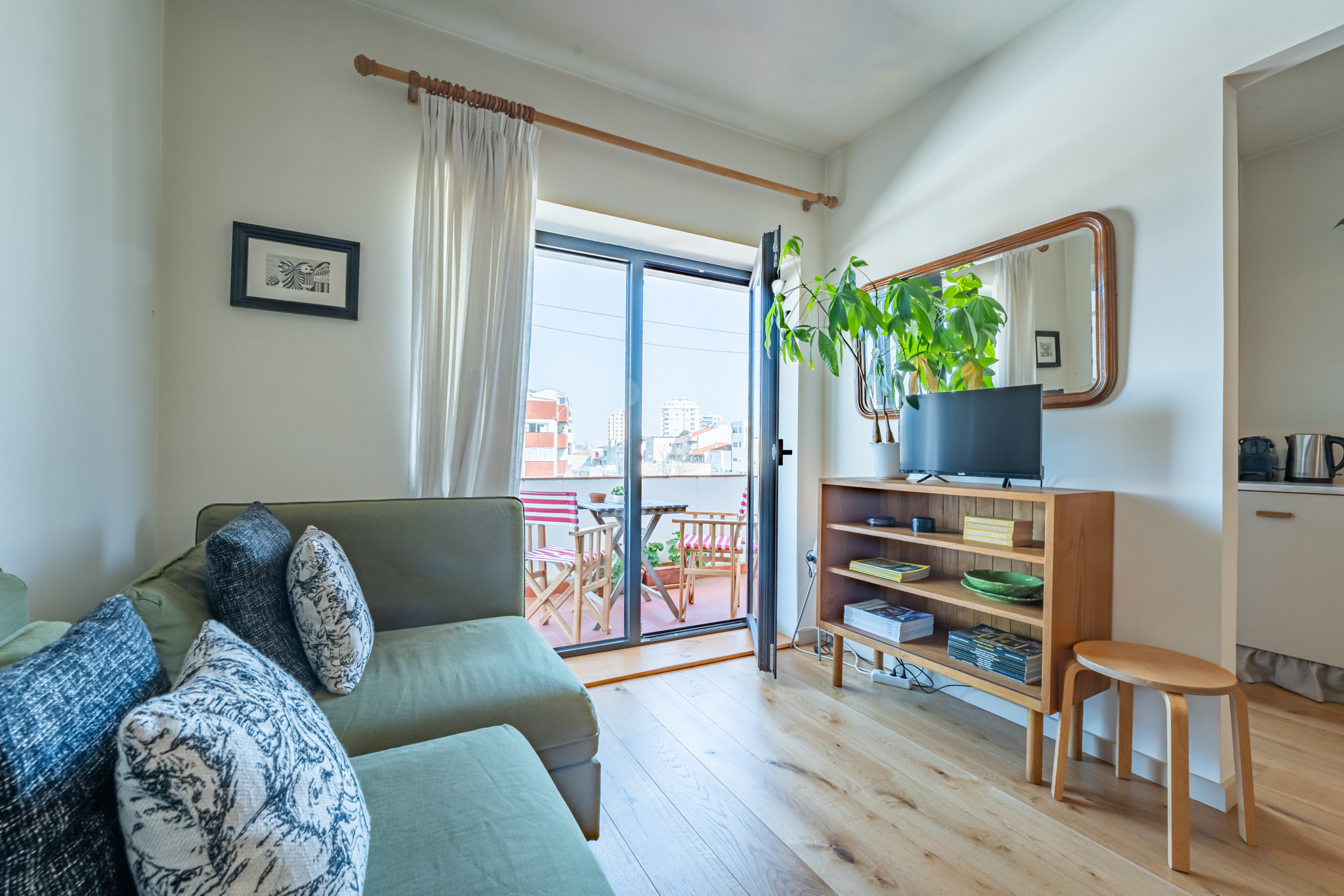 Com uma excelente exposição solar ao longo do dia, o espaço é naturalmente luminoso e cheio de energia positiva. Ao final da tarde, a varanda torna-se o cenário perfeito para abrandar o ritmo, desfrutar de um momento de silêncio ou simplesmente apreciar a luz dourada que envolve a cidade.