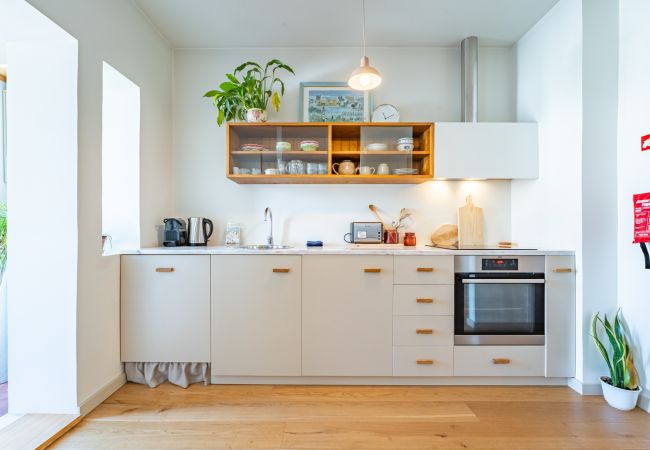 A sala de estar é espaçosa e cheia de luz natural, com janelas amplas coloridas que oferecem vistas deslumbrantes da cidade. Decorada com móveis modernos e confortáveis, é o local ideal para relaxar após um dia explorando o Porto. A cozinha totalmente equipada com todos os eletrodomésticos necessários, incluindo um fogão, micro-ondas, Chaleira, tostadeira e máquina de café. Os ladrilhos coloridos adicionam um toque de charme e autenticidade. O apartamento estudio possui uma transição suave e harmoniosa entre espaços decorado com um estilo único e acolhedor. A cama é confortável, garantindo uma ótima noite de sono.