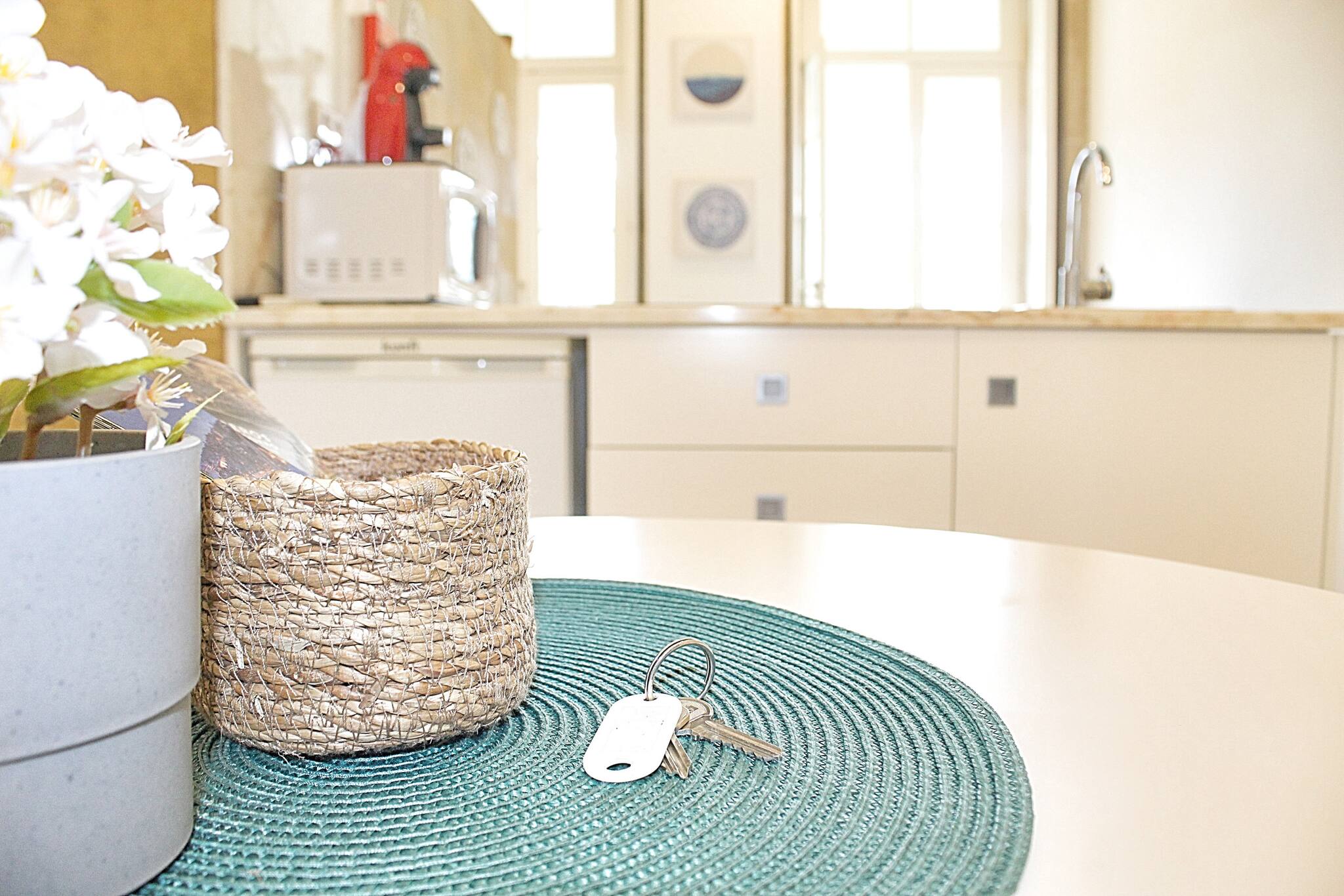 O pequeno balcão oferece um momento de tranquilidade para apreciar um café da manhã ou desfrutar de uma taça de vinho. Equipado com um extintor de incêndio e kit de primeiros socorros, o apartamento prioriza a segurança dos seus hóspedes.