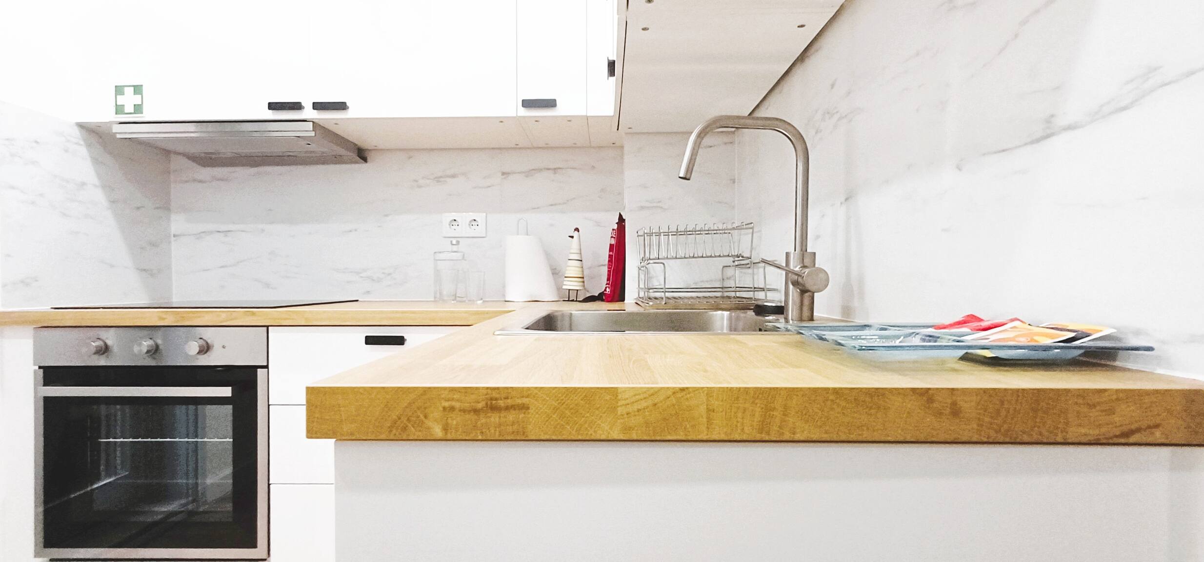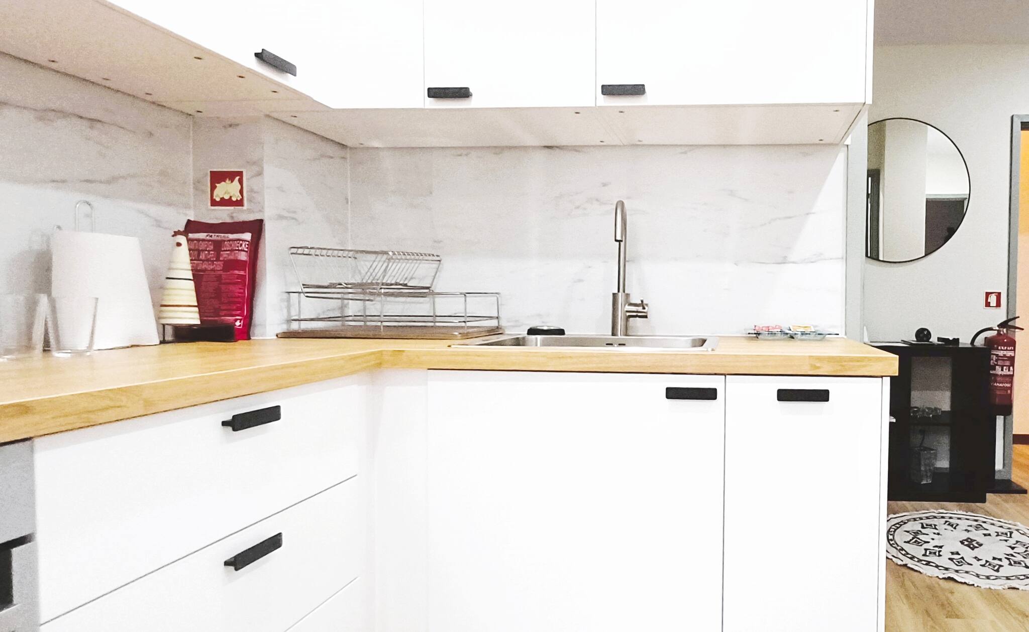 O pequeno balcão oferece um momento de tranquilidade para apreciar um café da manhã ou desfrutar de uma taça de vinho. Equipado com um extintor de incêndio e kit de primeiros socorros, o apartamento prioriza a segurança dos seus hóspedes.