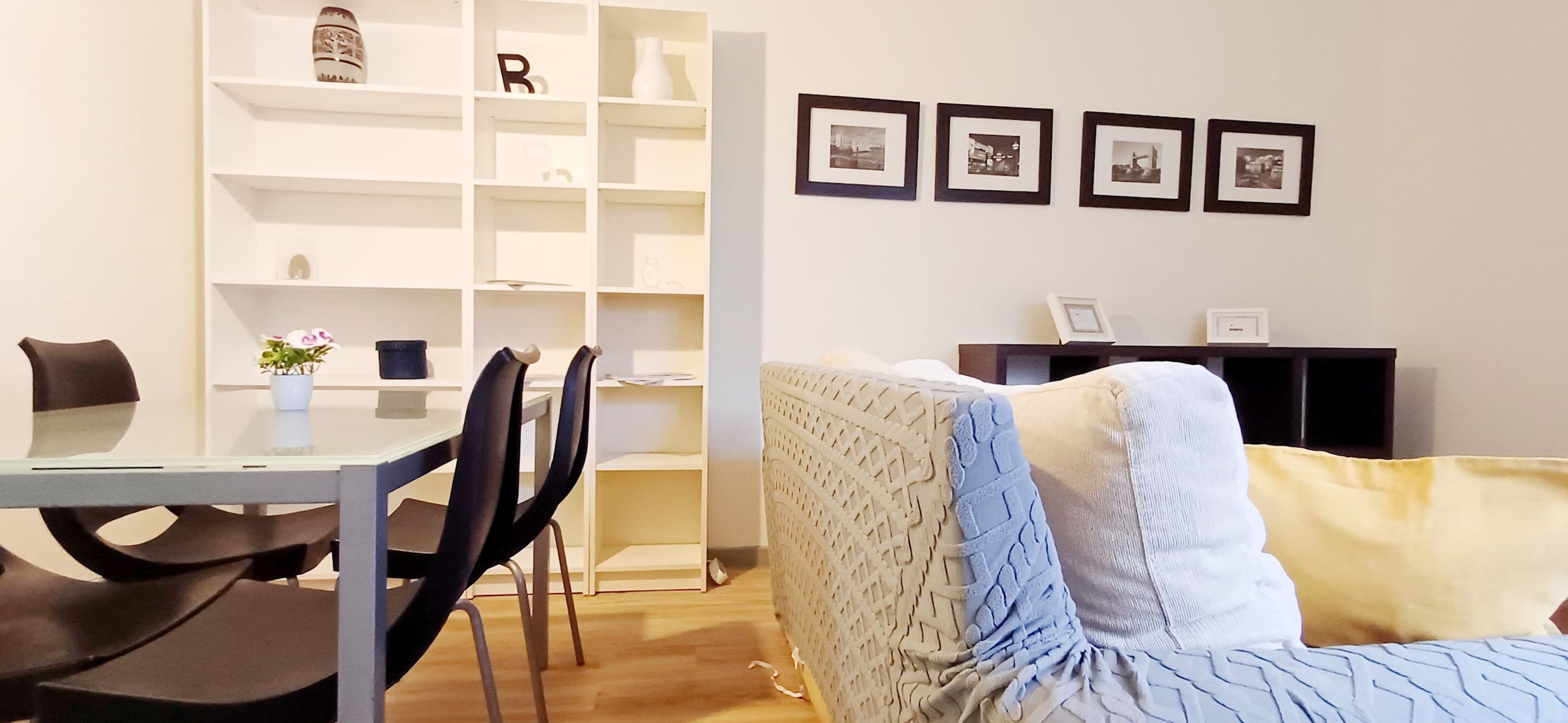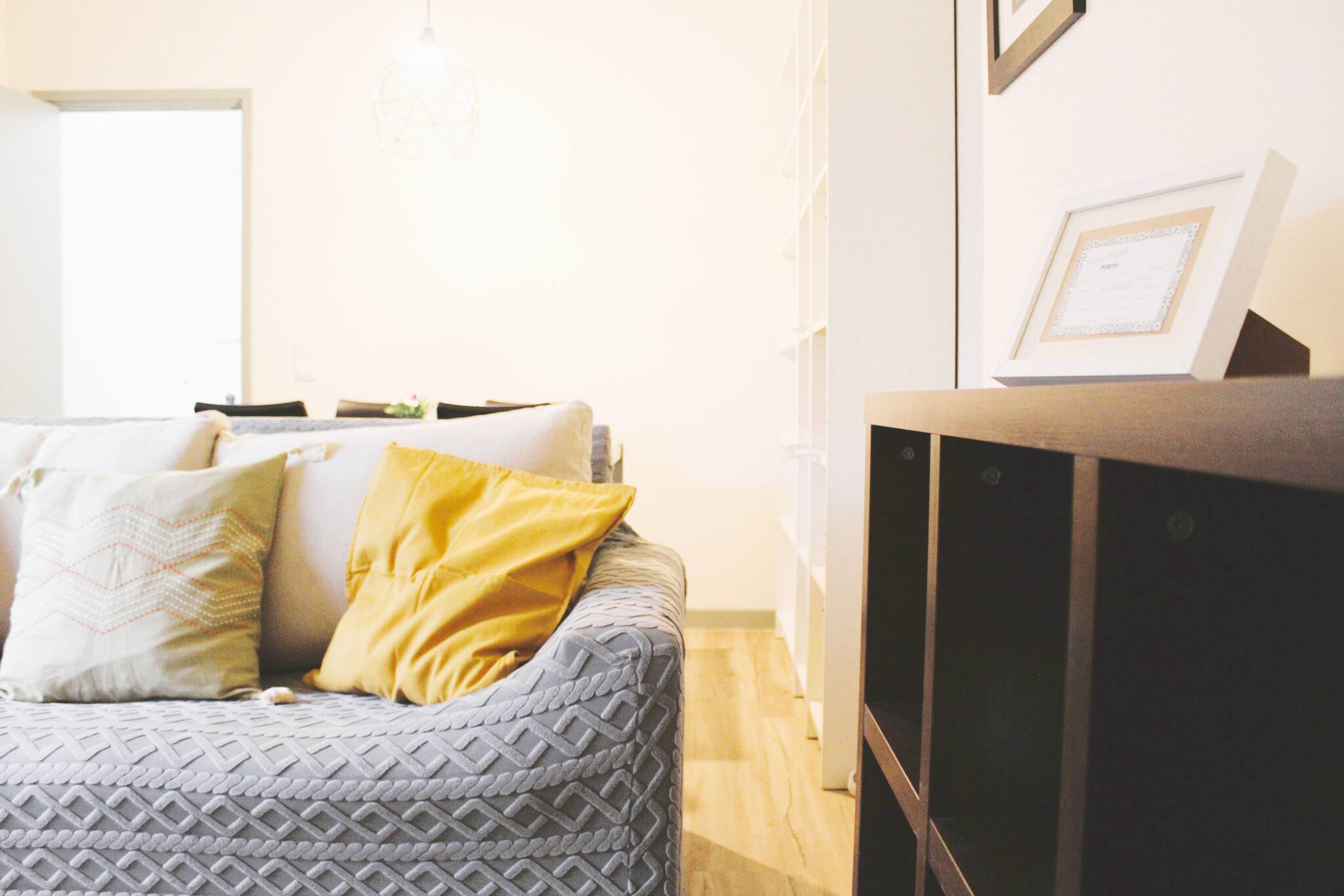 Ao entrar, você será recebido por uma sala de estar luminosa e arejada, decorada com um toque tipico, moderno e confortável. Relaxe no sofá enquanto planeia suas aventuras na cidade ou assiste a um filme TV. A área de jantar adjacente é perfeita para desfrutar de refeições em família ou para compartilhar momentos especiais com amigos.