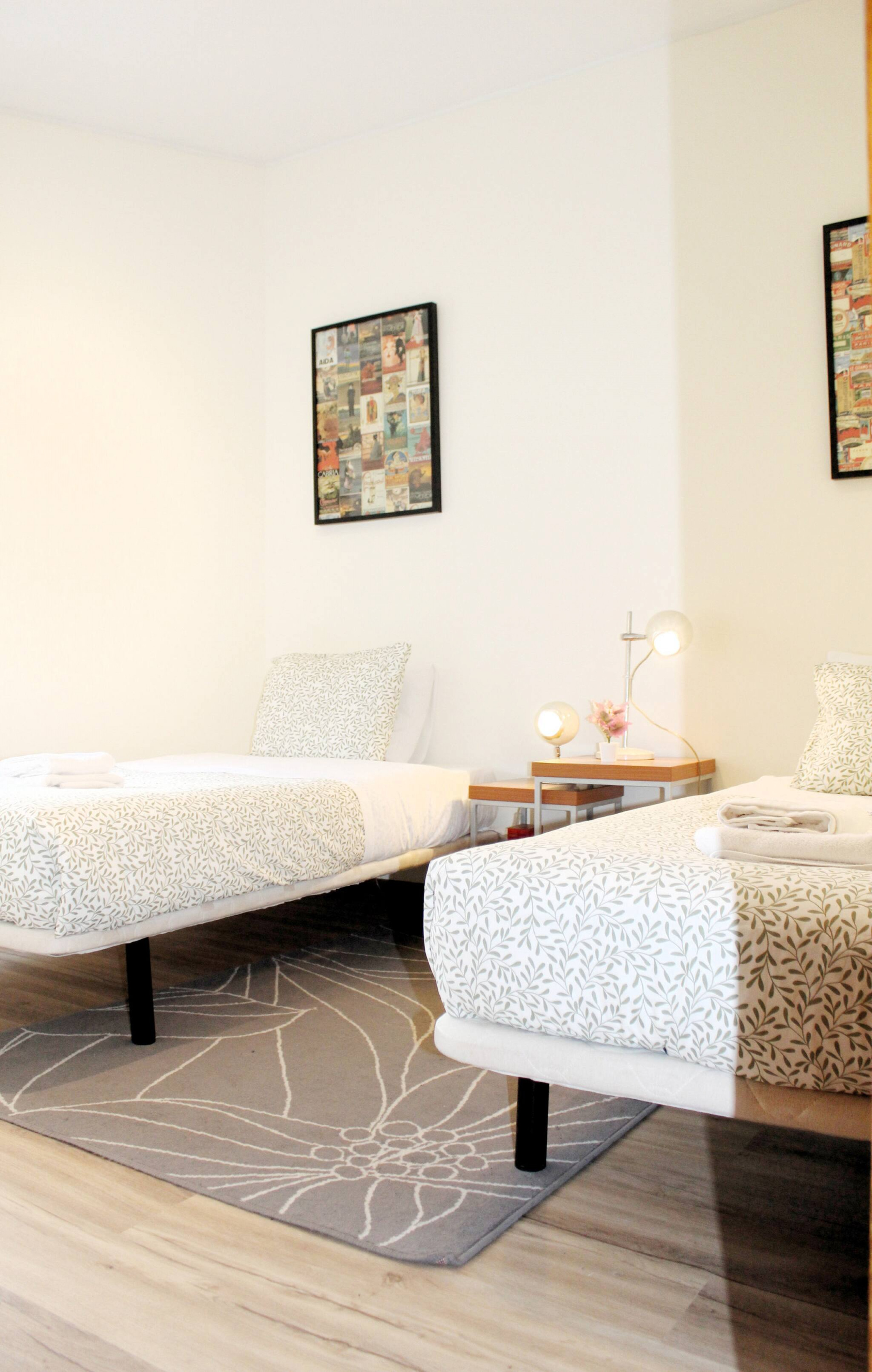 O apartamento possui dois quartos confortáveis, 1 com cama de casal e outro com 2 camas individual e espaço de armazenamento amplo para suas roupas e pertences. Lençóis limpos e edredons aconchegantes garantem uma boa noite de sono após um dia agitado de passeios turísticos.