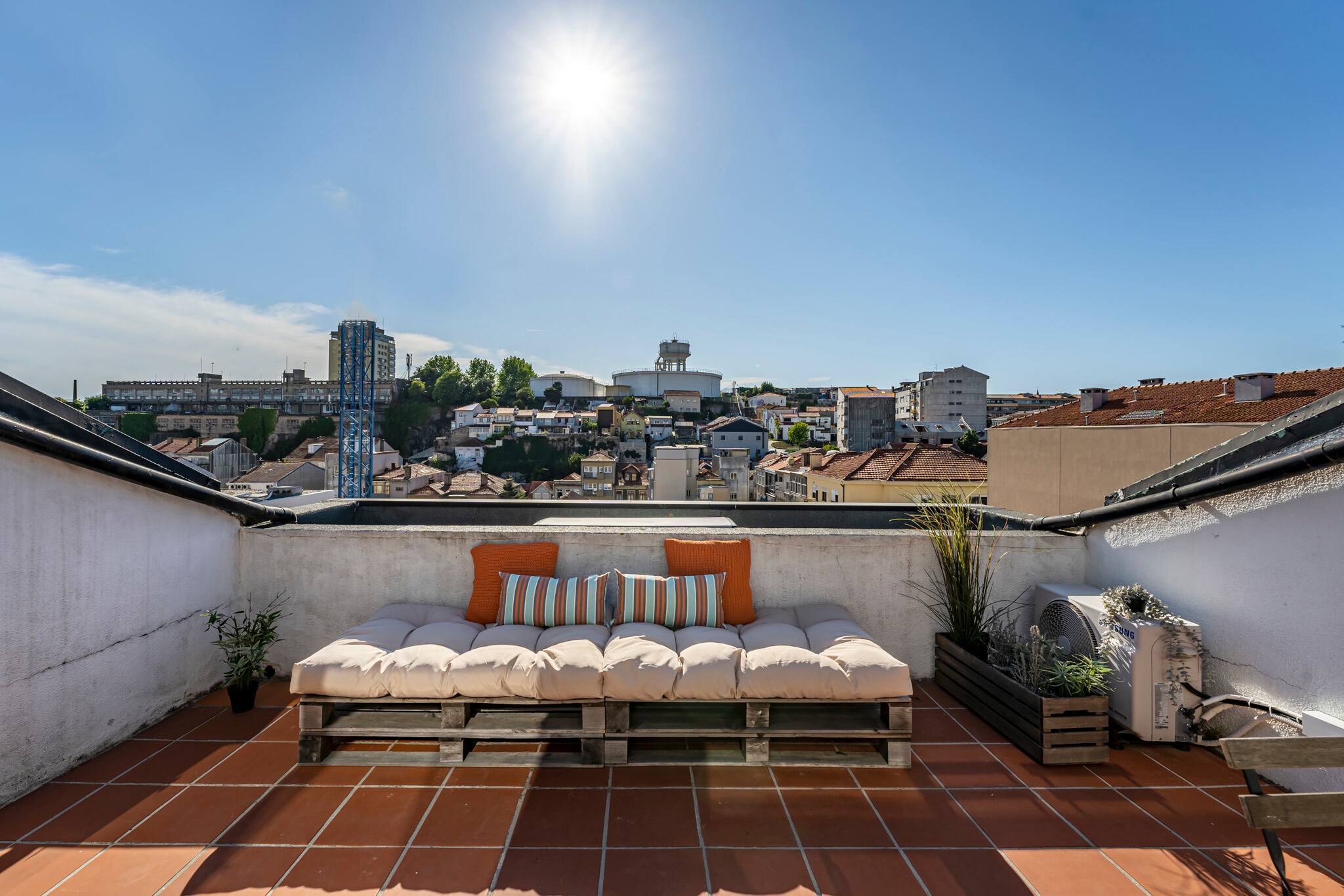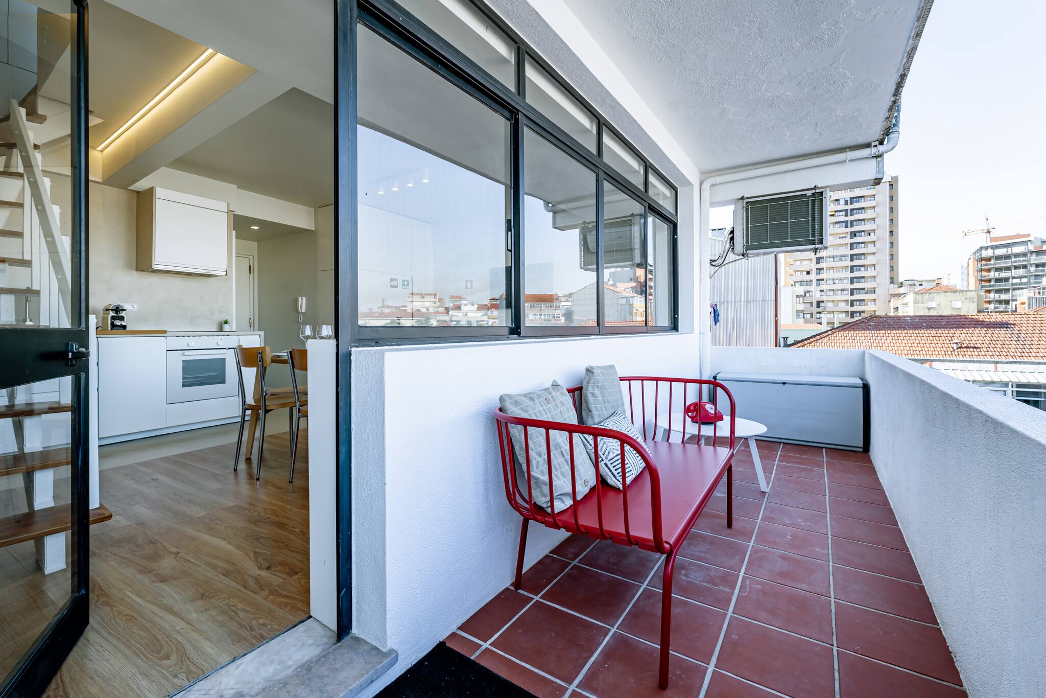 Apartamento incrível para que tenha uma estadia tranquila e em grande estilo. Desfrute de um por de sol multicolor com vista sobre a cidade num encantador terraço, na companhia de amigos, bebendo um bom vinho português ou aproveite para jantar, em dias mais quentes.