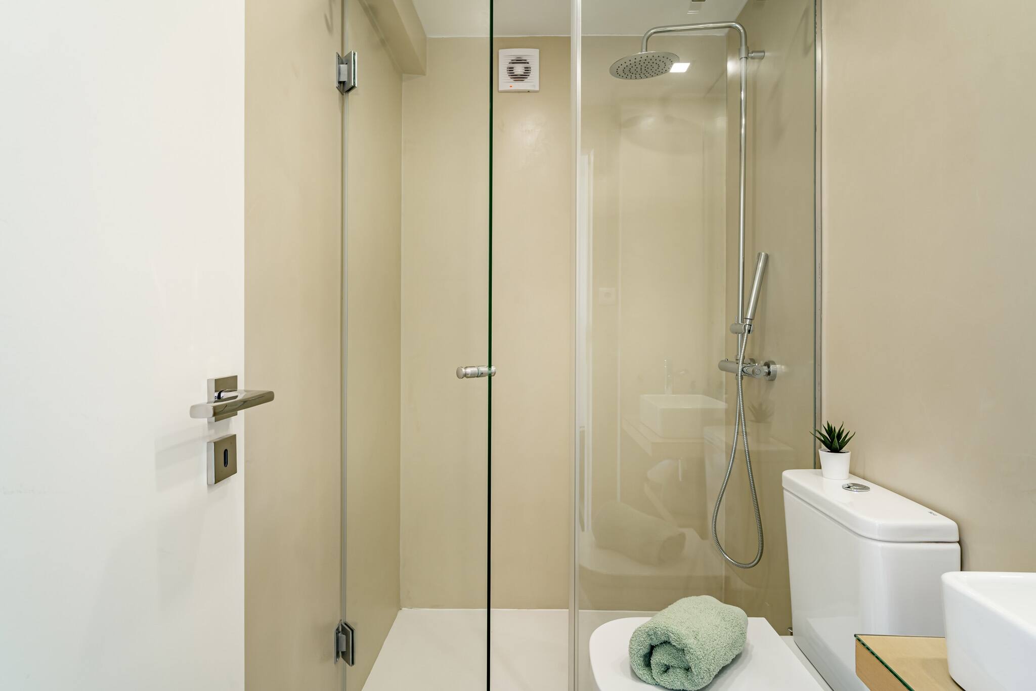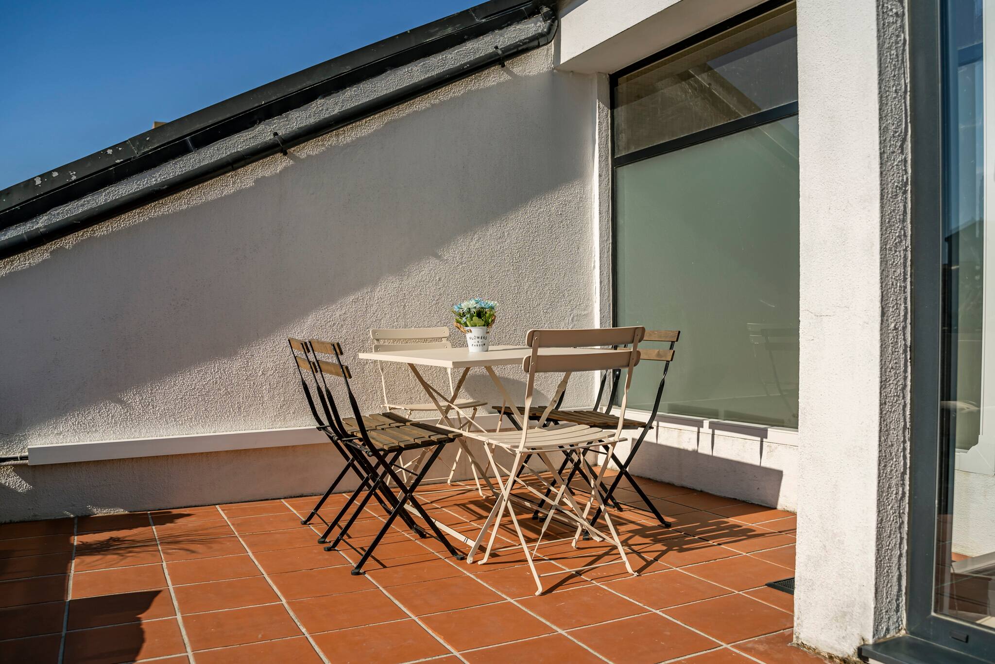 A sala de estar e de jantar virada a poente oferece uma luz natural fantástica ao final do dia e um ambiente perfeito para relaxar. O terraço virado a nascente é ideal para tomar o pequeno-almoço ao sol ou simplesmente desfrutar da tranquilidade da manhã.