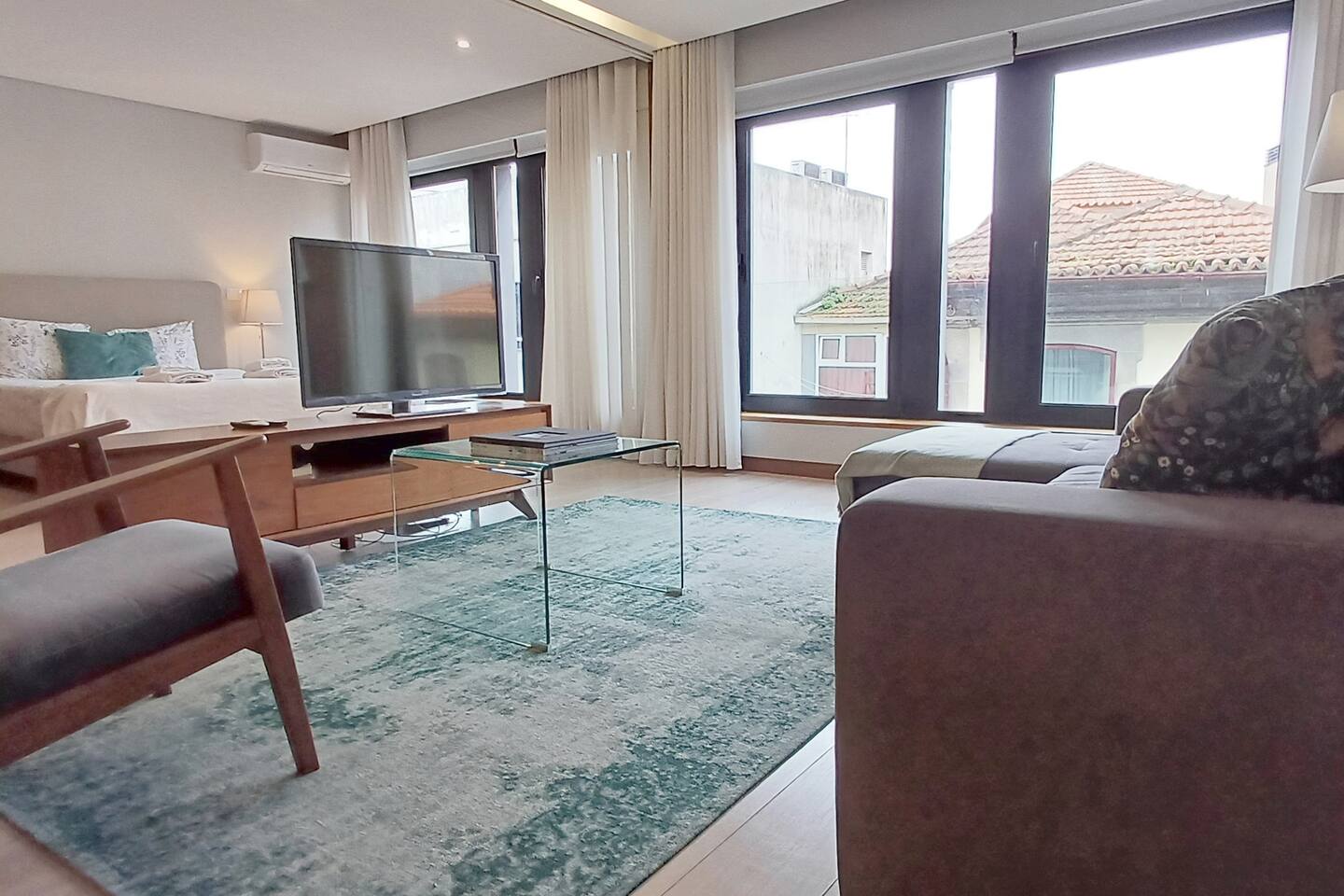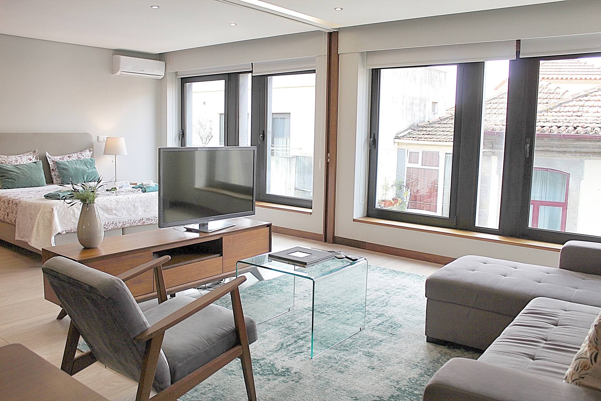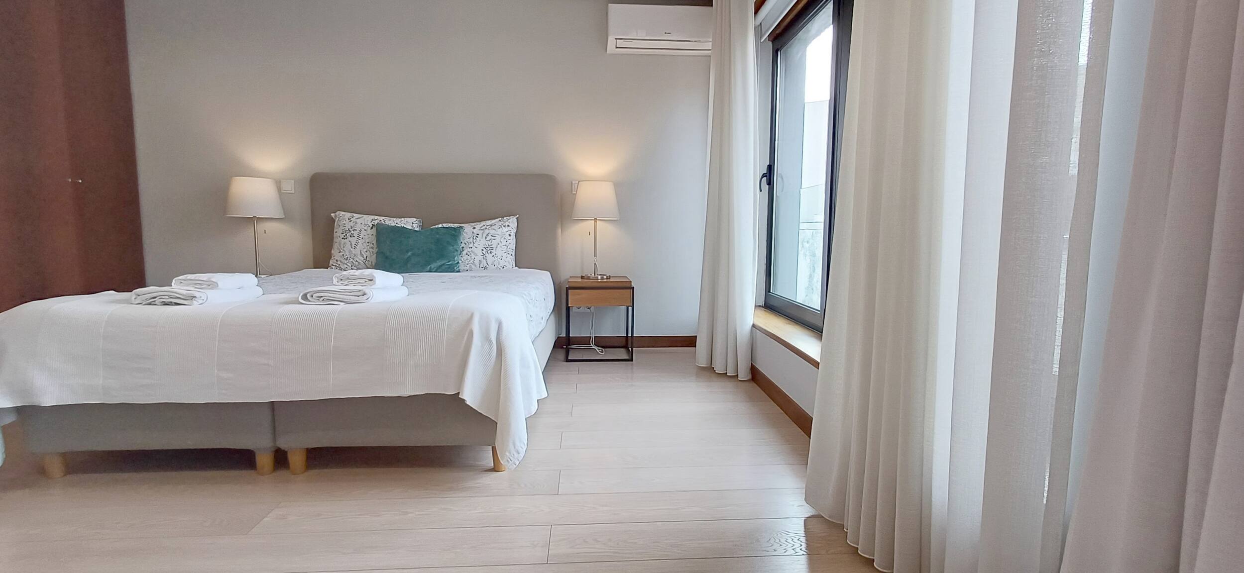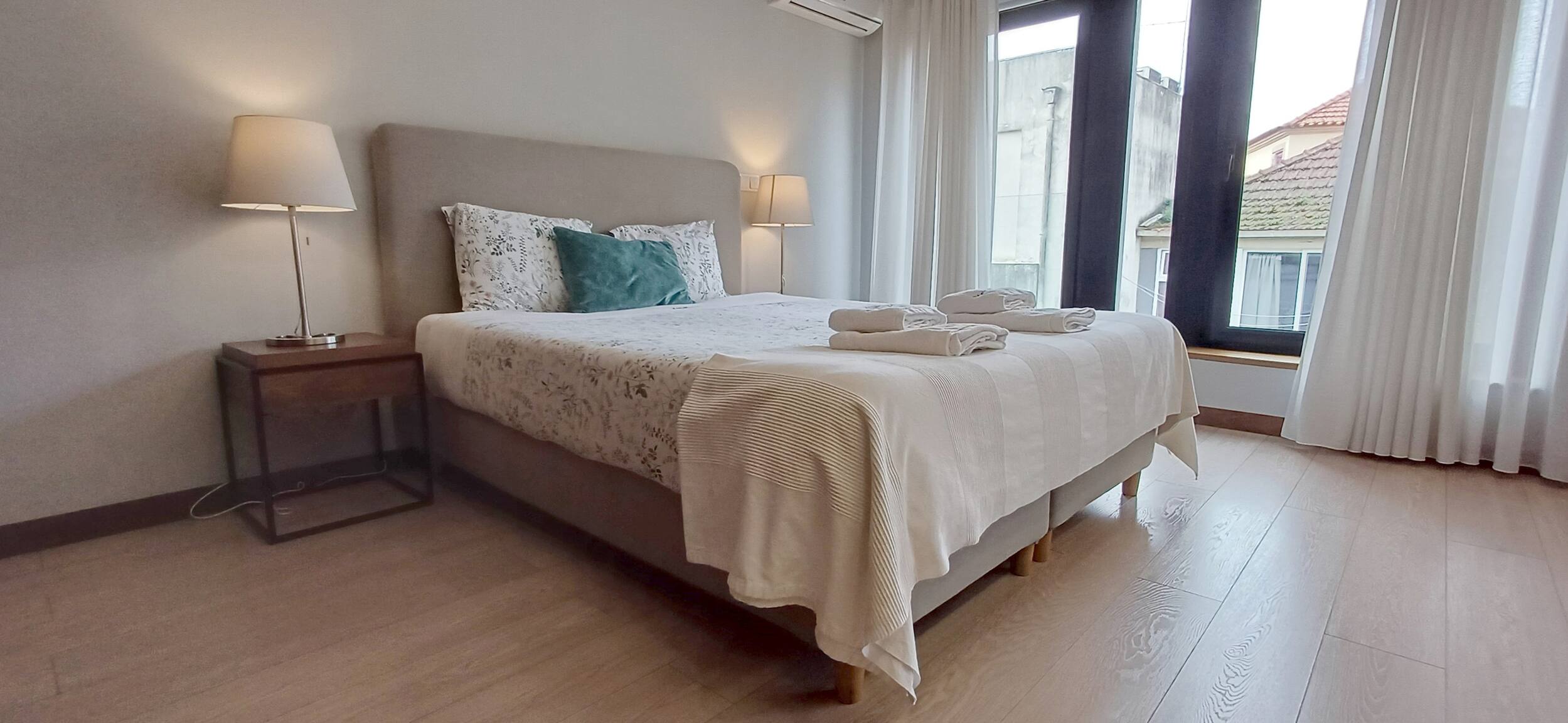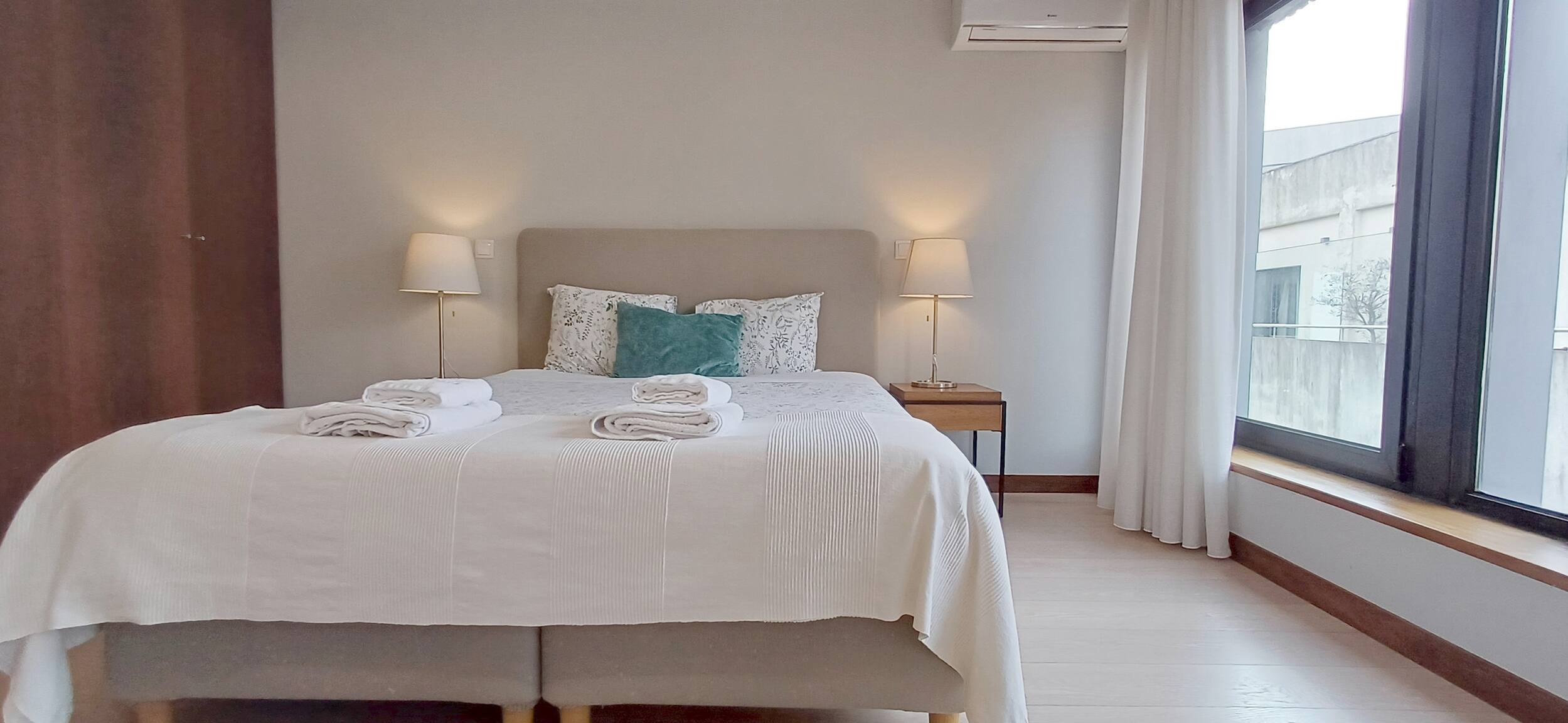O espaço dispõe de ar condicionado, garantindo o máximo conforto em qualquer época do ano. A conectividade é assegurada através de WiFi gratuito, e encontrará também comodidades como chaleira elétrica, máquina de café, ferro de passar e produtos de limpeza.