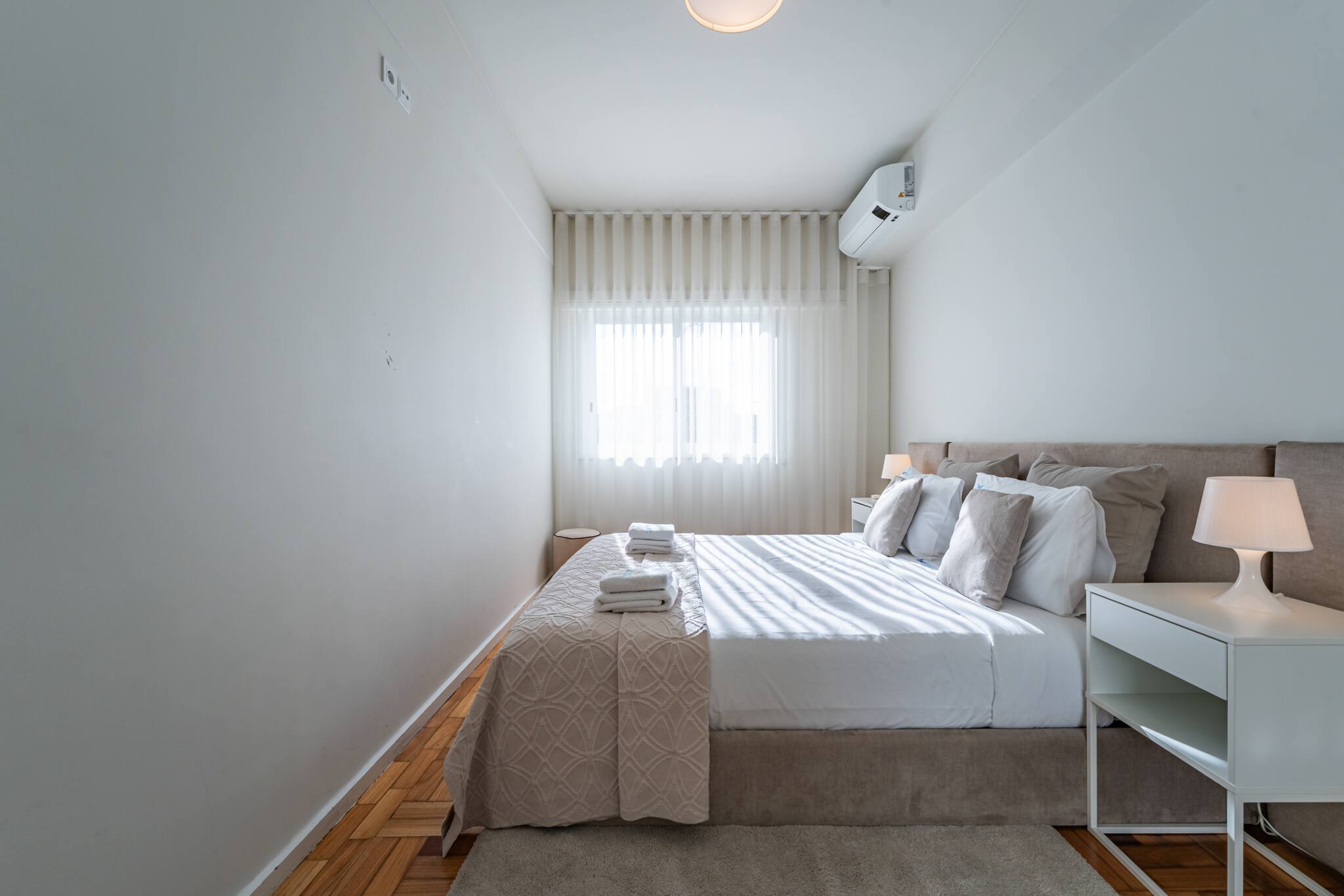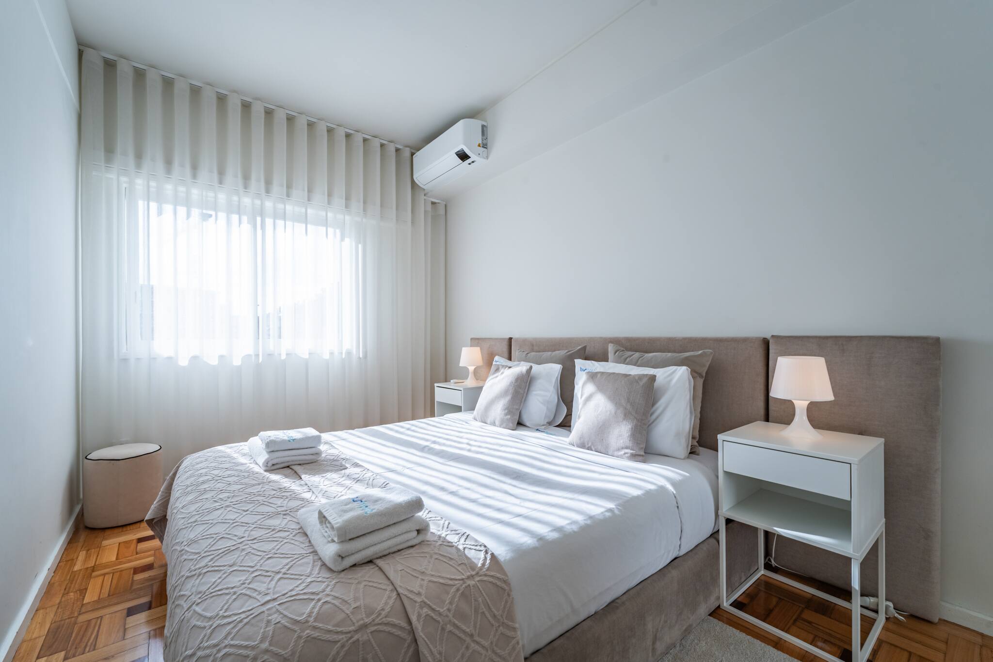 Este apartamento tem ar condicionado em todos os compartimentos que permite aquecer e arrefecer os espaços. Dispõe de 2 quartos com cama de casal King Size, com lençóis de qualidade hoteleira gratuitos, almofadas hipoalergénicas, uma casa de banho privativa com banheira, incluindo toalhas, produtos de higiene pessoal gratuitos e secador de cabelo.