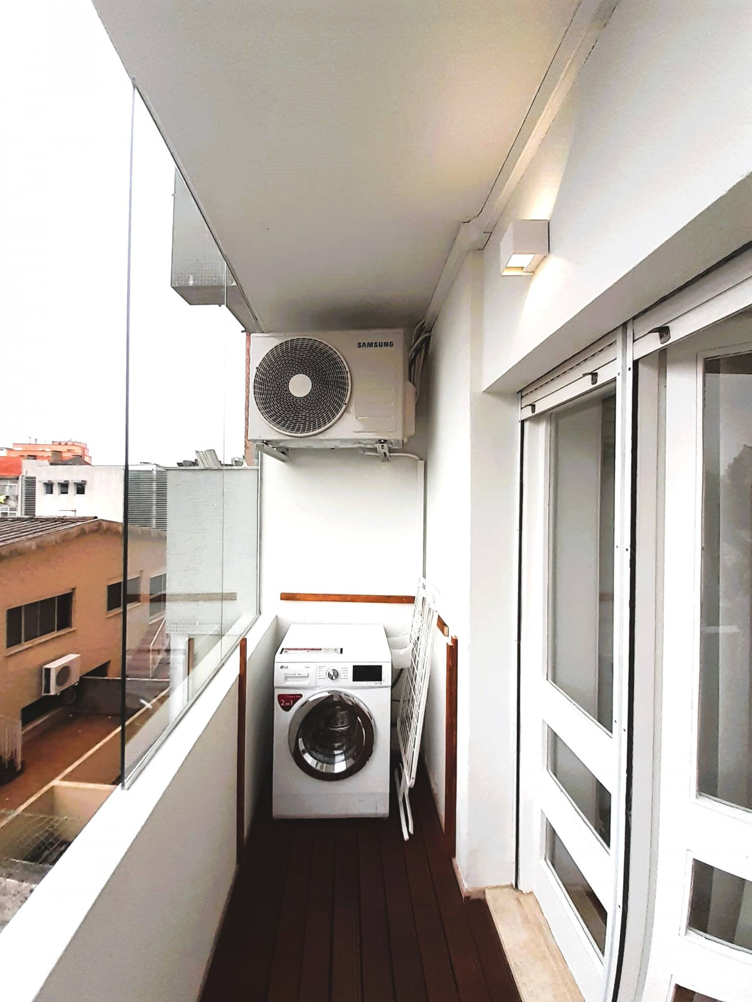 O apartamento também tem equipamento de engomadoria para as suas necessidades, bem como máquina de lavar e secar roupa.