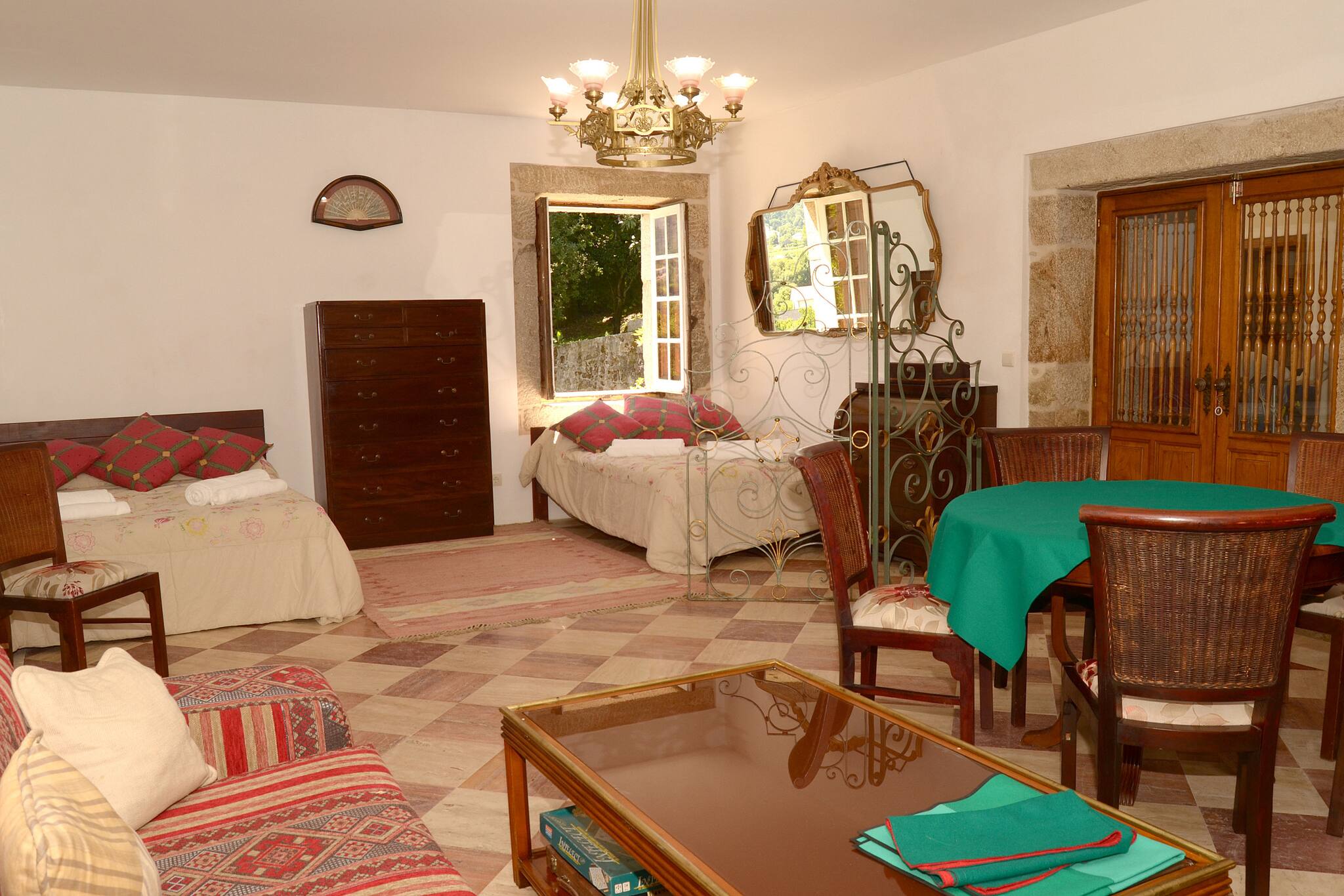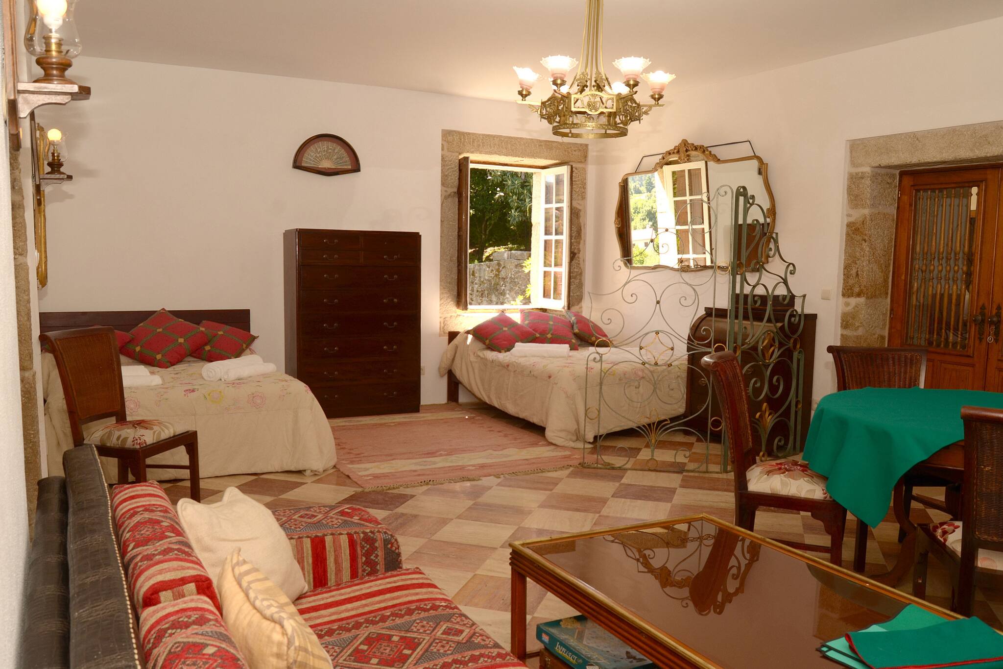 Quarto inserido na Quinta de Santo António, numa casa senhorial do século XIX rodeada por natureza. A propriedade oferece piscina, jardim botânico, baloiço e um riacho que convida ao descanso. Ideal para casais ou grupos que procuram tranquilidade, em ambiente rural. Aqui acorda-se com o canto dos pássaros, passeia-se pelos jardins, mergulha-se na piscina e termina-se o dia sob o céu estrelado. Mais do que uma estadia, é uma experiência de desconexão, silêncio e reconexão com o essencial.