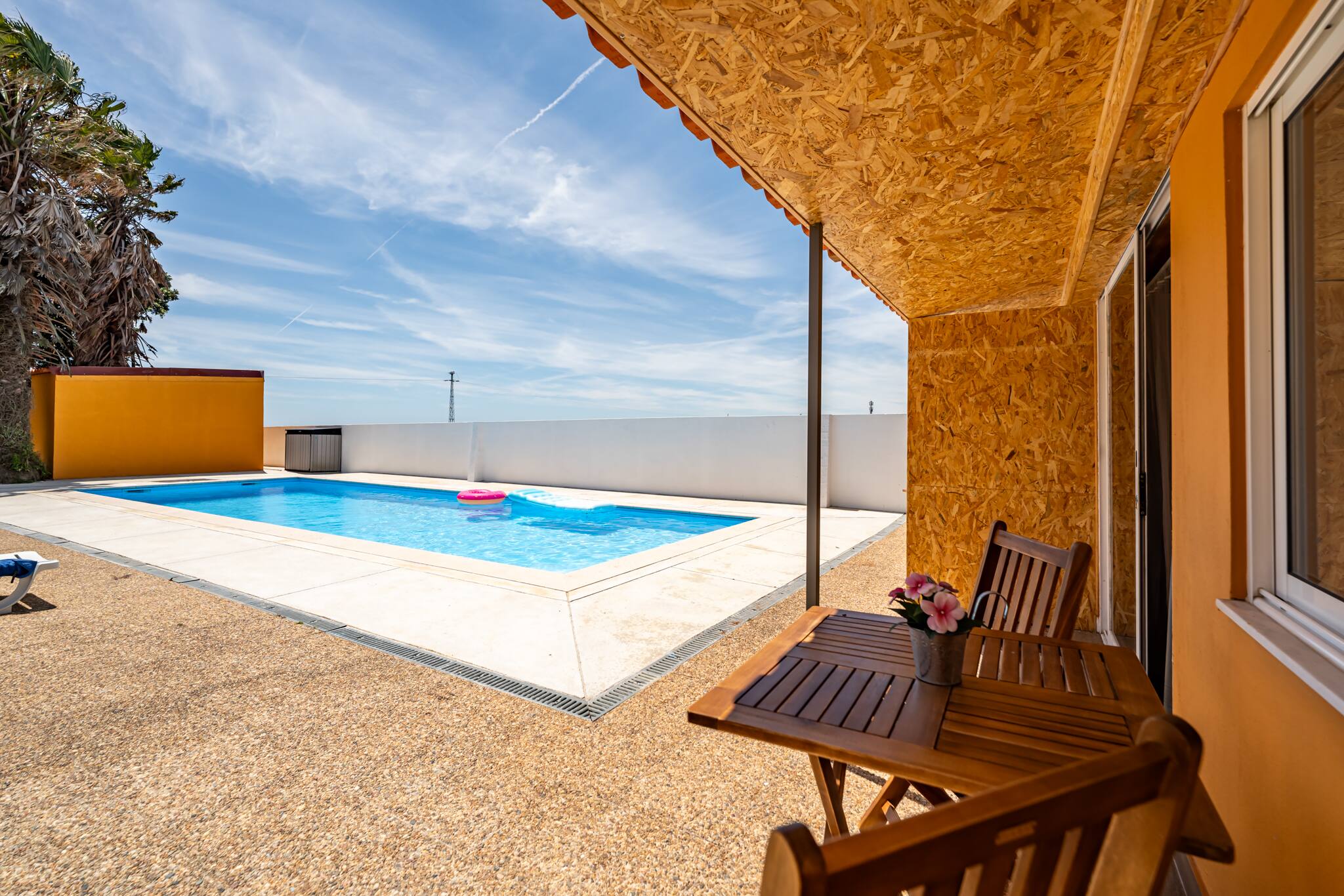Este refúgio à beira-mar oferece o equilíbrio perfeito de relaxamento. O coração desta casa é a área de lazer ao ar livre. A piscina convida você a mergulhar e relaxar sob o sol, enquanto a área de estar é perfeita para refeições ao ar livre, churrascos e momentos de descontração com os amigos e família. À noite, o jardim iluminado cria um ambiente mágico para desfrutar das noites quentes de verão. Para os amantes de Surf este é um local de partida em busca das melhores ondas.