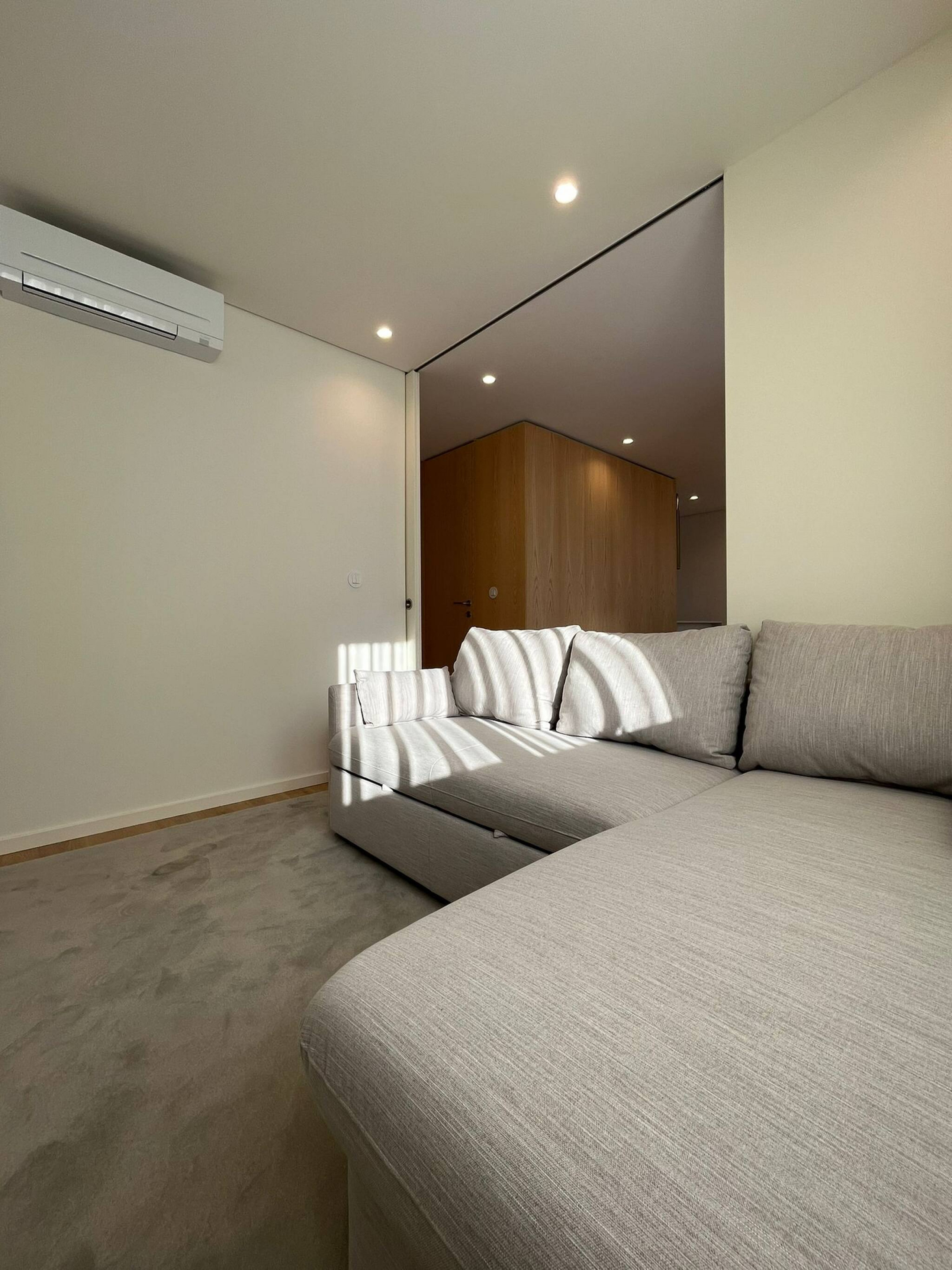A casa dispõe de ar condicionado em todos os compartimentos. A sala de estar tem um sofá-cama que se adapta perfeitamente para dois adultos dormirem confortavelmente. Este espaço de sala de estar está separado da sala de jantar e tem uma porta de correr que permite aos hospedes terem um espaço totalmente privado como um quarto, caso durmam no sofá-cama.