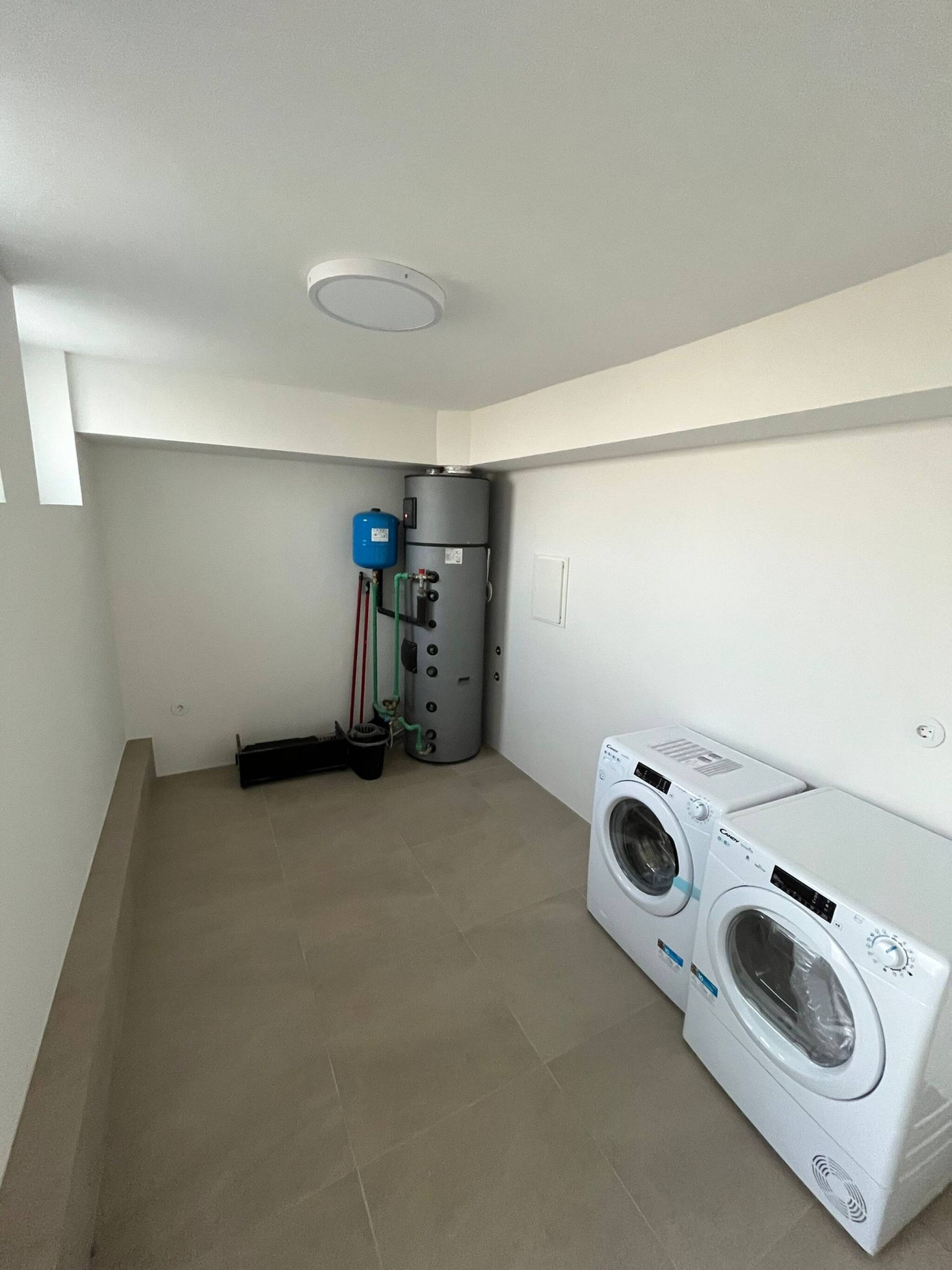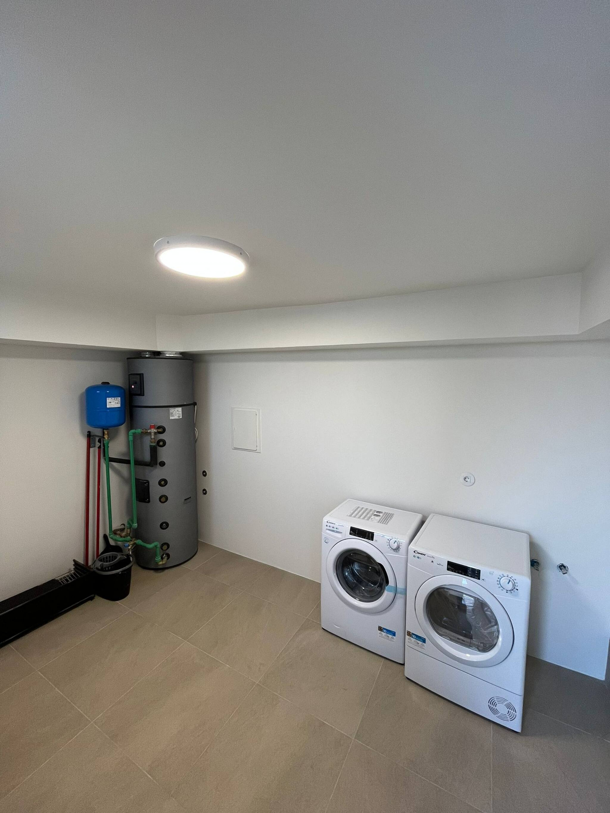 No nível do subsolo da casa existe uma lavandaria e está equipada com máquina de lavar e secar roupa gratuito.