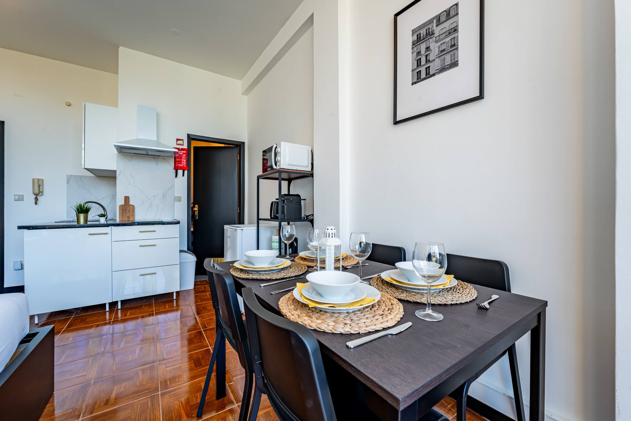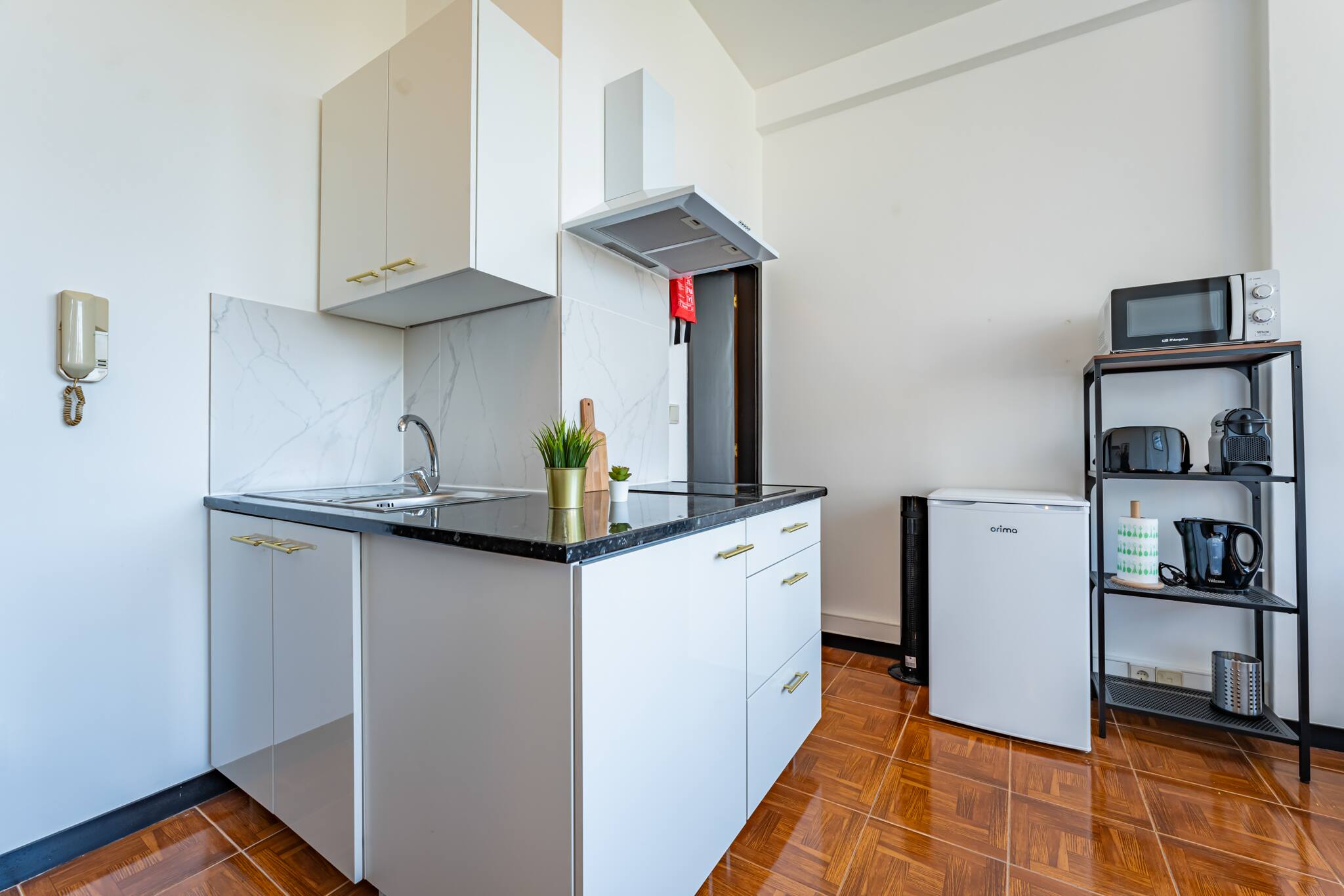 Nosso apartamento estúdio foi cuidadosamente projetado para oferecer o máximo de conforto em um espaço compacto. A decoração moderna e elegante cria um ambiente acolhedor e convidativo para você relaxar após um dia de exploração pela cidade. A área de estar/dormir é equipada com uma confortável cama de casal, perfeita para uma boa noite de sono. A kitchenette compacta está totalmente equipada com tudo o que você precisa para preparar suas próprias refeições, se desejar, incluindo fogão, geladeira, micro-ondas e utensílios de cozinha. O banheiro privativo oferece um chuveiro revigorante e todas as comodidades necessárias para sua estadia.