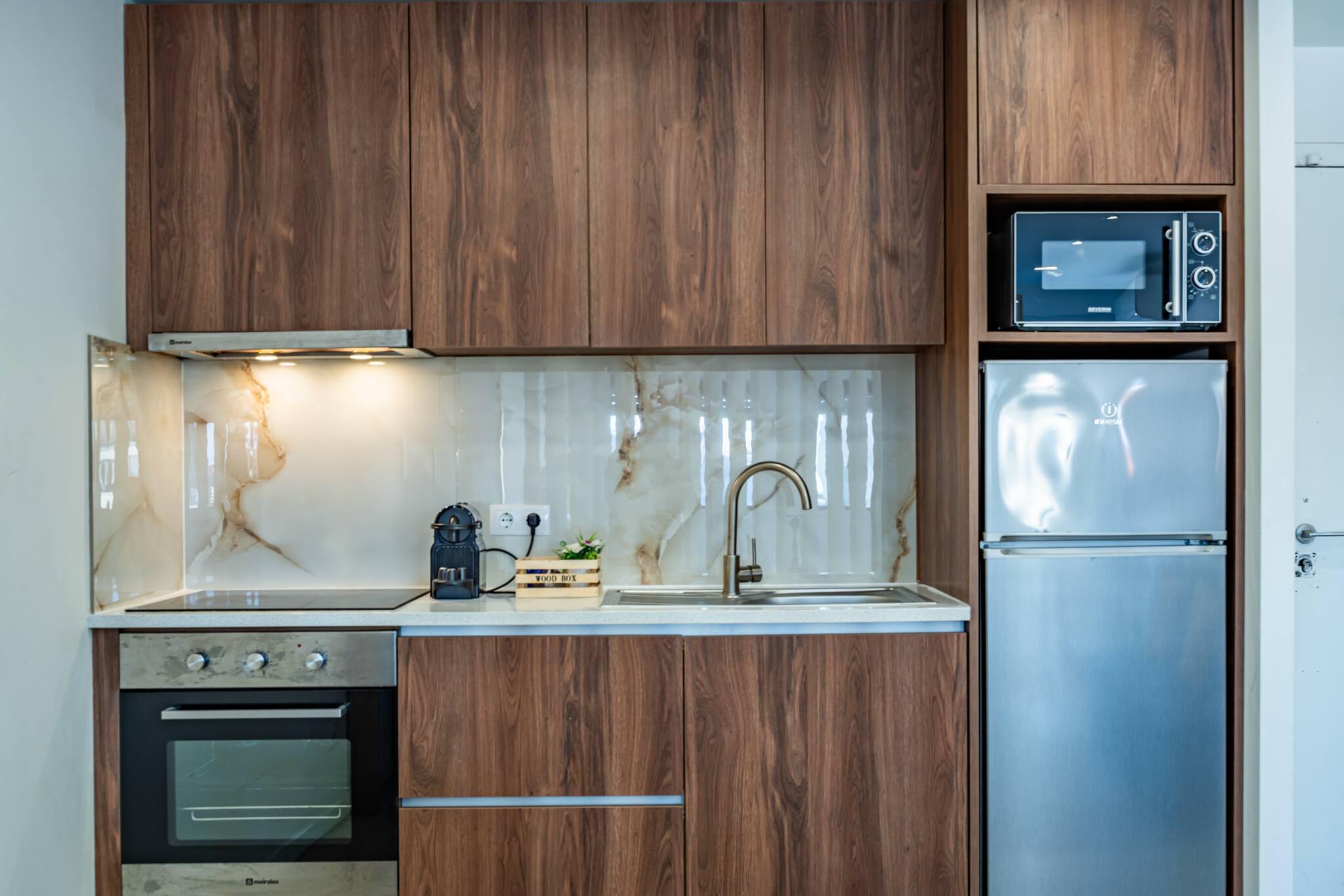 Nosso apartamento estúdio foi cuidadosamente projetado para oferecer o máximo de conforto em um espaço compacto. A decoração moderna e elegante cria um ambiente acolhedor e convidativo para você relaxar após um dia de exploração pela cidade. A área de estar/dormir é equipada com uma confortável cama de casal, perfeita para uma boa noite de sono. A kitchenette compacta está totalmente equipada com tudo o que você precisa para preparar suas próprias refeições, se desejar, incluindo fogão, geladeira, micro-ondas e utensílios de cozinha. O banheiro privativo oferece um chuveiro revigorante e todas as comodidades necessárias para sua estadia.
