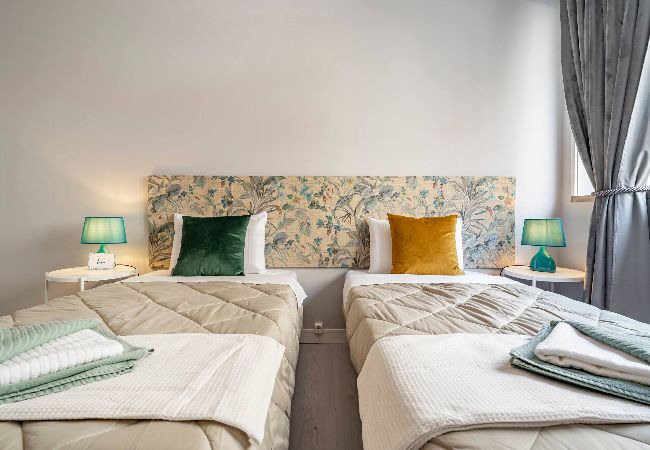 O espaço conta com um quarto elegantemente decorado, equipado com duas camas individuais que garantem um descanso tranquilo. A luminosidade e o design cuidadoso criam um ambiente acolhedor e relaxante, perfeito após um dia de exploração pela cidade.