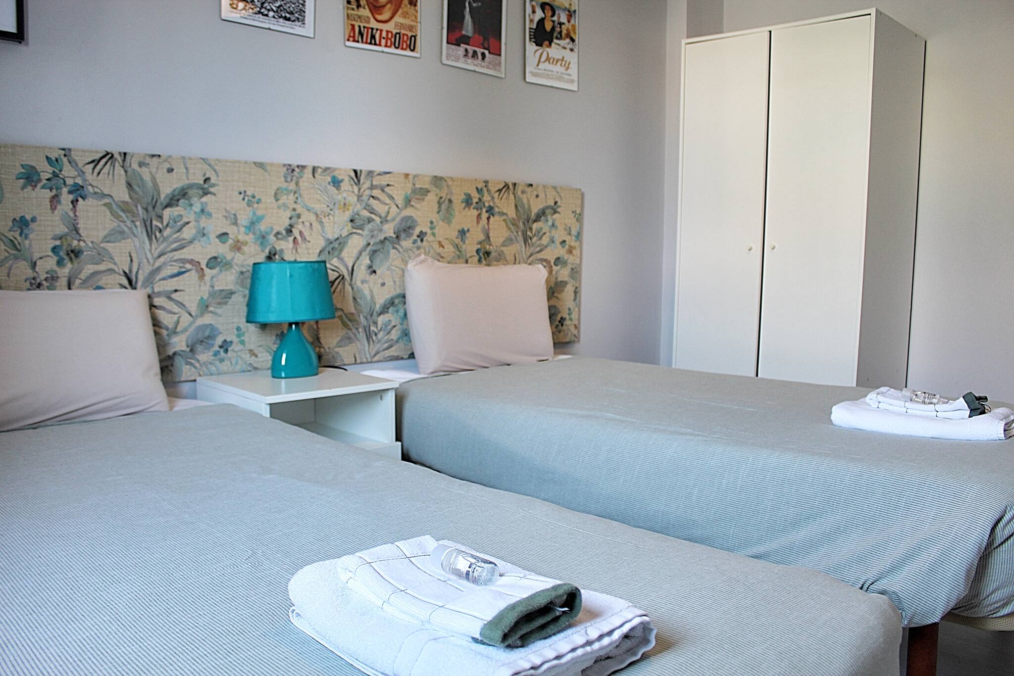 O quarto está equipado com duas camas individuais que garantem um descanso tranquilo. A luminosidade e o design moderno criam um ambiente relaxante e convidativo. A propriedade dispõe de uma ampla varanda de 180 metros quadrados, perfeita para momentos de lazer e socialização.